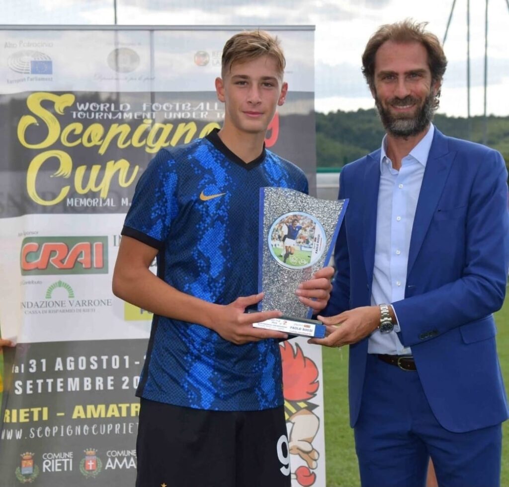 “Siamo felici – afferma il Presidente Asd Scopigno Cup Fabrizio Formichetti – di aver consegnato gli ambiti e meritati riconoscimenti al D.S. Piero Ausilio e al Calciatore Francesco Pio Esposito, in particolare a Francesco Pio Esposito per il legame con la Scopigno Cup, poiché nell’esizione 2021 della Scopigno Cup fu’ il vincitore del Premio Paolo Rossi quale miglior Cannoniere del Torneo.”